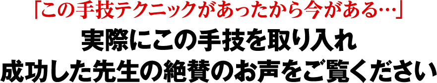 「この手技テクニックがあったから今がある」