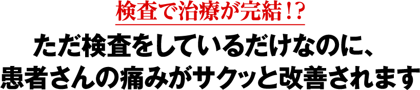 ただ検査しているだけで、重度の腰痛からギックリ腰、頚椎症、四十肩まで、治療家泣かせの症状をみるみるうちに改善することができます。