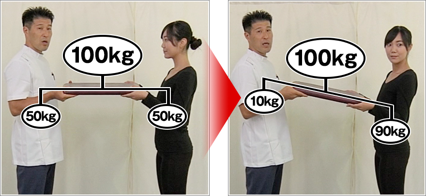100kgのタンスを2人で運ぶとすると、両者は50kgずつ負担します。