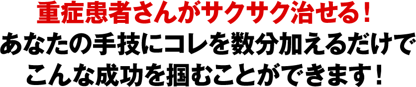 これらの悩みを全て解消することができ、どんな患者さんであっても自信を持って症状の苦しみから救ってあげることができるからです。