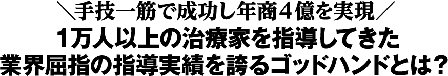 このように、著名なゴッドハンドをはじめとし、治療院専門コンサルタントや数々の先生から推薦を頂いているばかりか、日本全国の治療家さん達がこの技術を学びにセミナーに押し寄せるほどの手技を開発した治療家さんが・・・