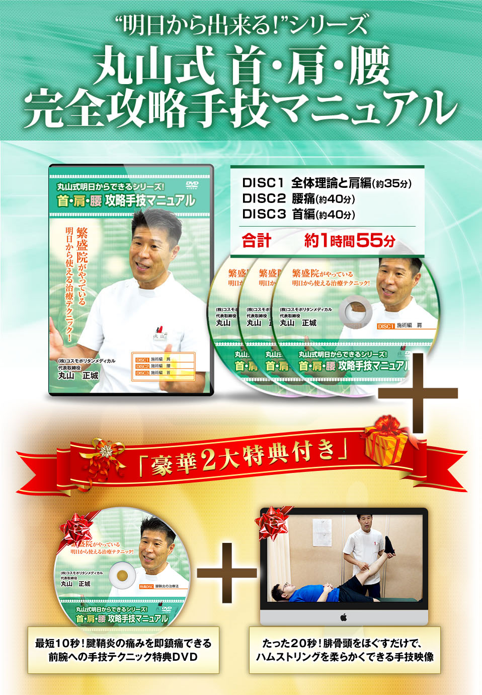 今回のDVDには、国民病と言われる4人に1人が感じている「肩こり・頭痛」を確実に改善する方法が、余すことなく詳細に収録されています。