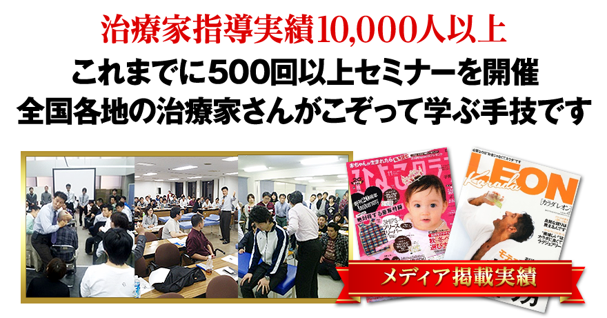 このように、著名なゴッドハンドをはじめとし、治療院専門コンサルタントや数々の先生から推薦を頂いているばかりか、日本全国の治療家さん達がこの技術を学びにセミナーに押し寄せるほどの手技を開発した治療家さんが・・・