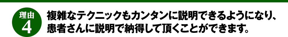 そんな丸山先生の公開するテクニックは、徹底的に患者さんの立場に立って考えられた治療法だからこそ、患者さんが理解しやすい説明ができるようになるテクニックです。